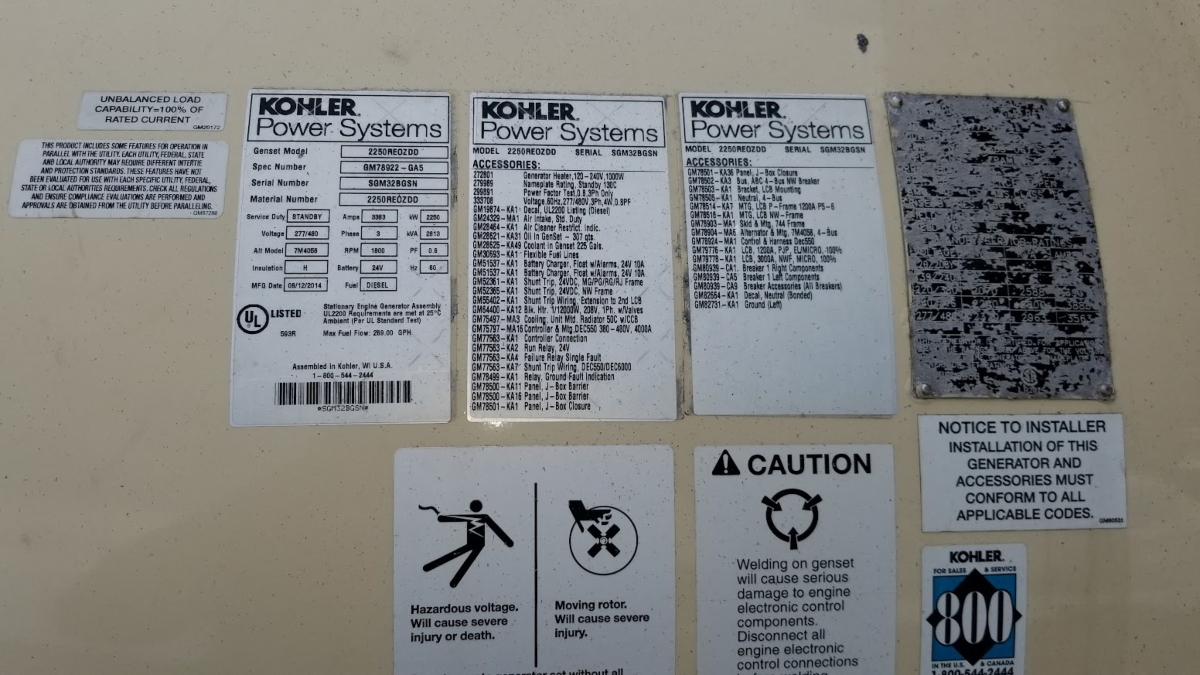Low hour used Kohler 2250Kw standby generator powered by a MTU 16V4000 engine with only 100-hours since new. This unit threw a rod so will need new block and crank. Included with this package is a second failed complete engine to use the block. You will still need a new crankshaft. This could be great opportunity for spare parts or just the electrical end , radiator ,etc (277/480vac, 60-hz at 1800rpm. ) Shipping from south-eastern US location.