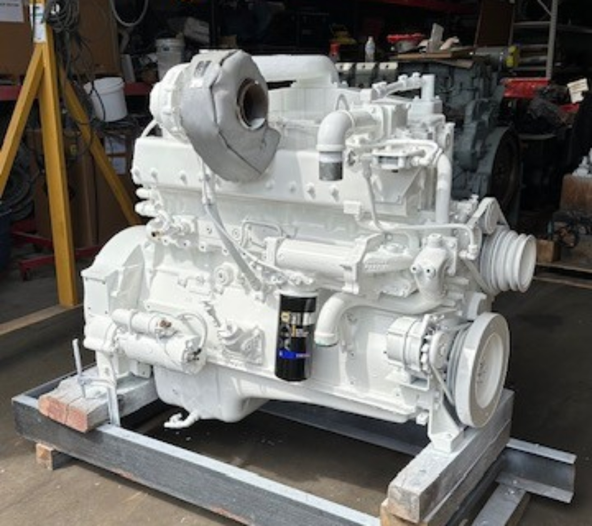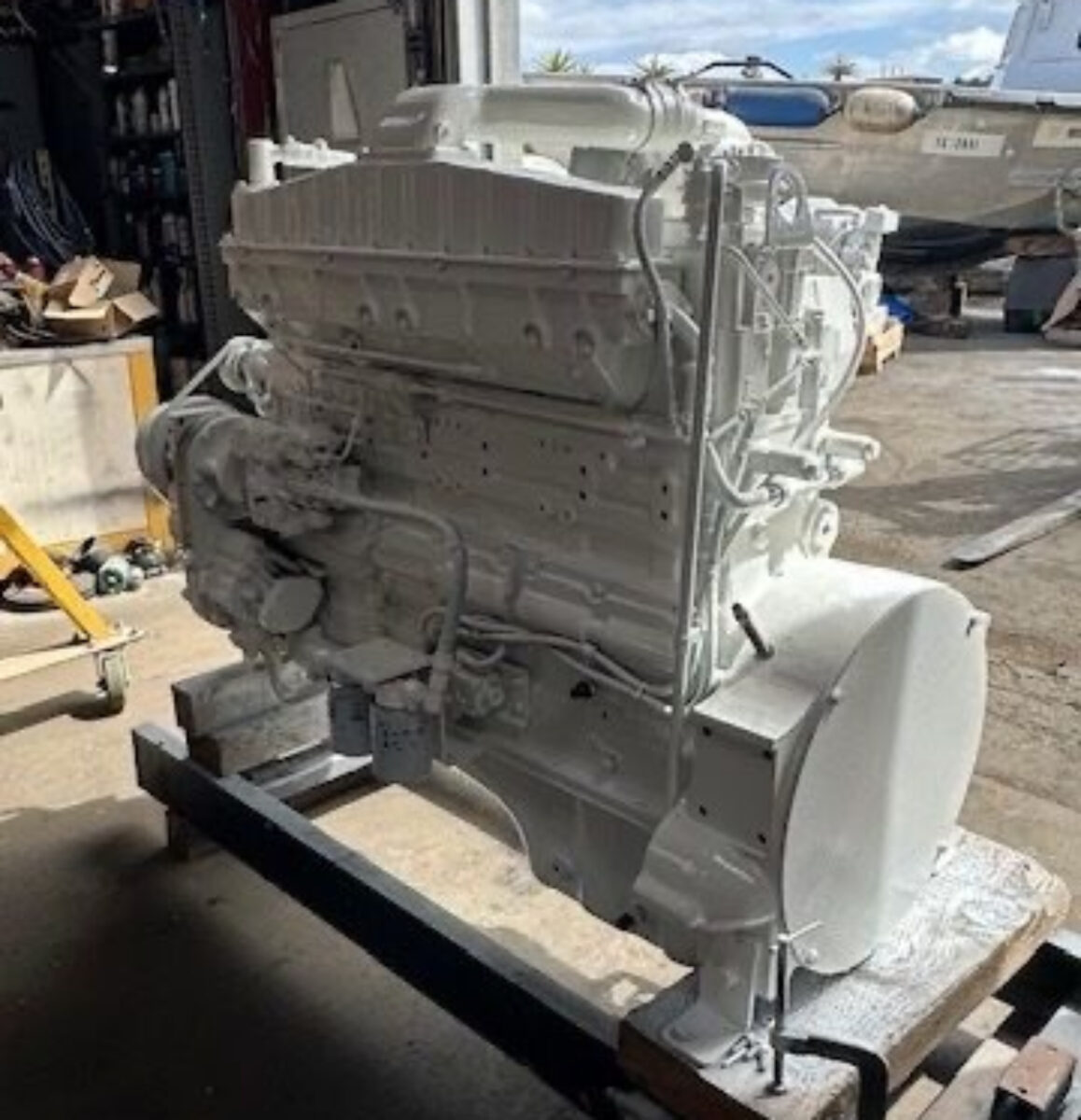 We have one very low hour (262 hours since new) Cummins NTA855 marine propulsion engine rated at 450hp at 1800rpm. In-line 6-cylinders with 14-liters displacement.