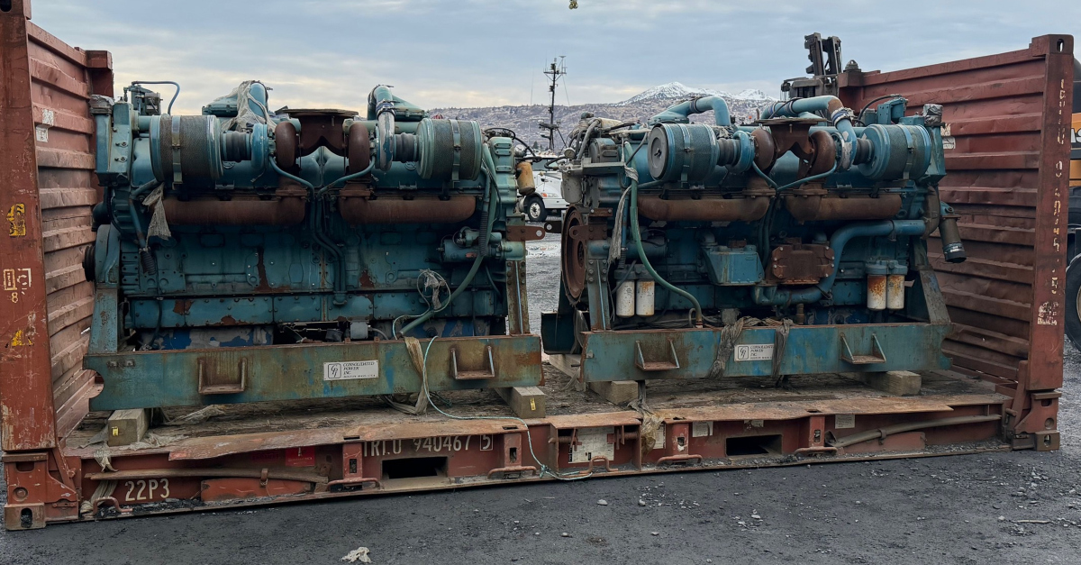 Two good used Detroit 16V149T keel-cooled marine engines available and rated up to 2400hp depending on injectors installed and rpm (1800-2100). The actual hours are unknown. These are V16, turbo-charged engines with 39.1 liters displacement. These engines were formerly driving gen-sets , but do have adjustable governors for variable speed operations.