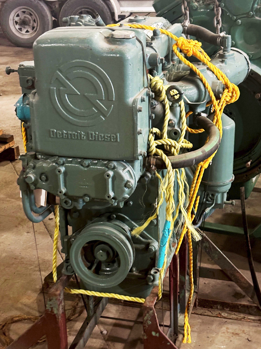 One unit available … Detroit Diesel 371 marine generator drive engine. Can also be used for propulsion application with governor adjustment to make variable speed. Engine has zero-hours since rebuild by Marine Systems Inc several years ago and never placed back into service.